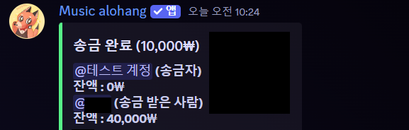/송금 : 타인과 게임머니를 송금할 수 있습니다.